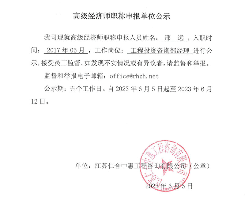 • 邢遠高級經濟師申報公示 06-06